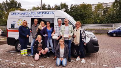 Op vrijdag 14 september jl. werden wij van de Dierenambulance Groningen blij verrast door de gemeente Groningen en de dierenbescherming met heerlijke taart.