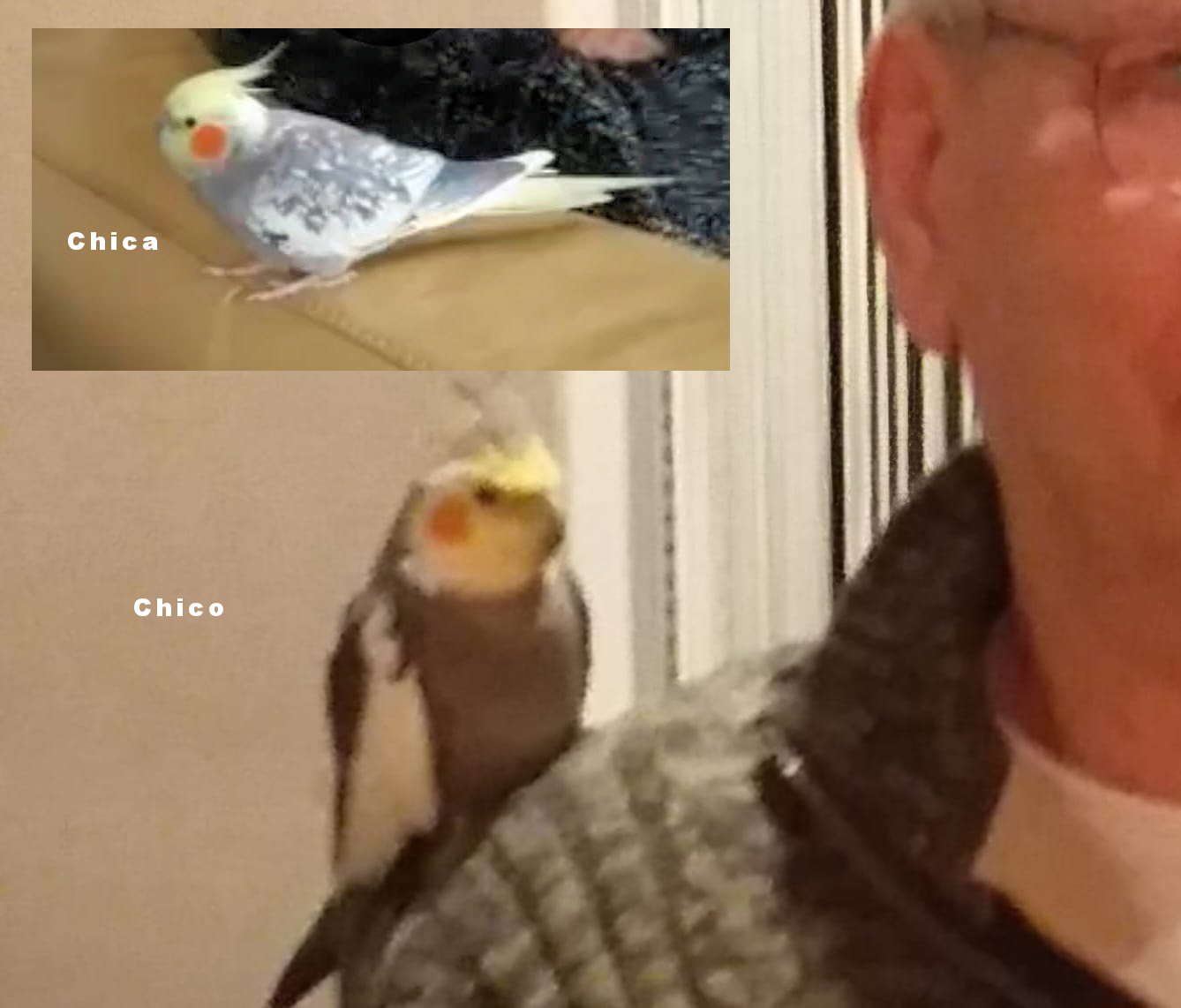 Vrouwtje Chica heeft een gele kuif en is behoorlijk tam. Mannetje Chico heeft een grijzige kuif en is schuw.