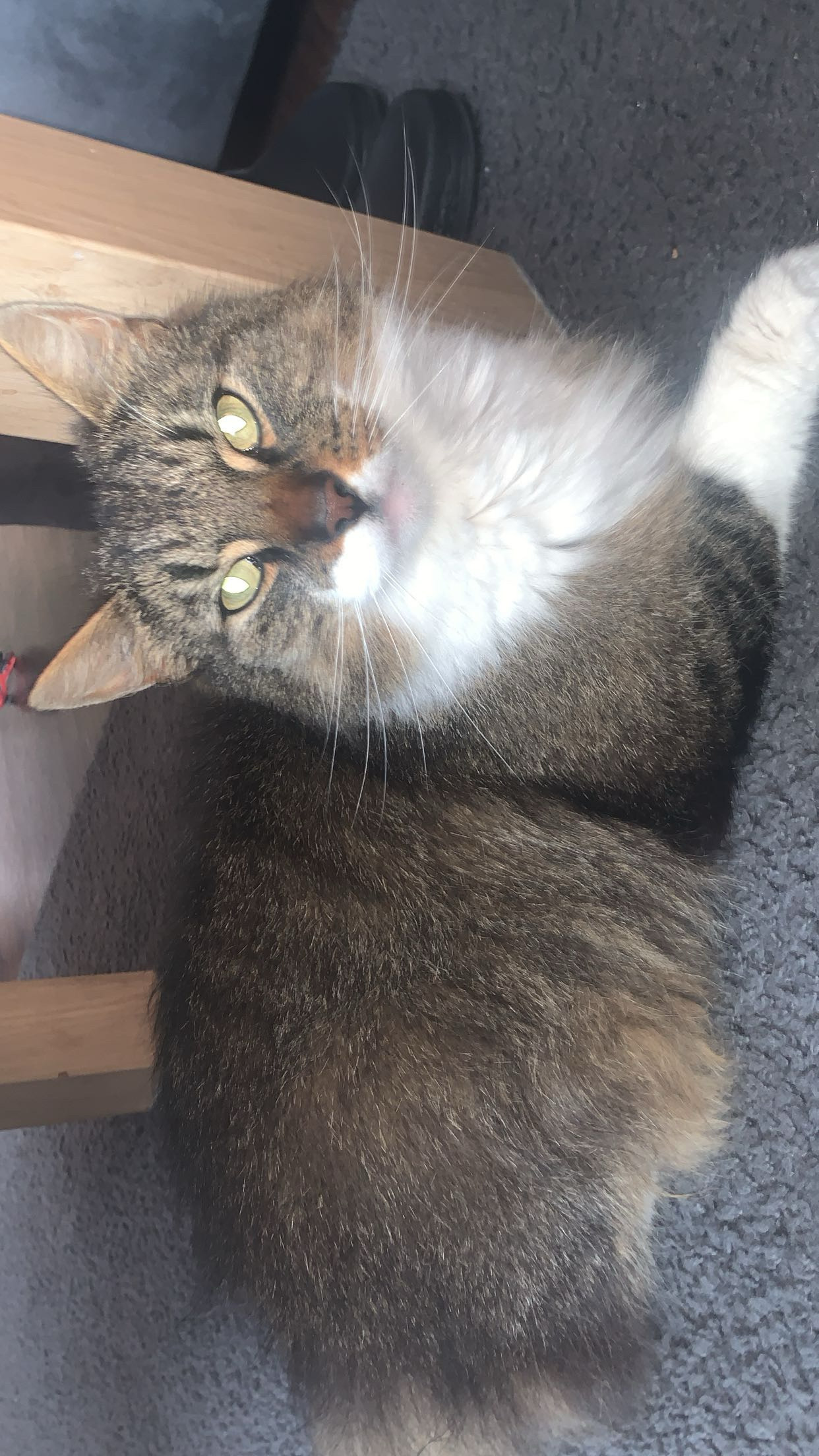 Cypress grijs met zwarte strepen een witte tekening rond zijn roze neusje. Mooie witte bef 4 gelijke witte pootjes