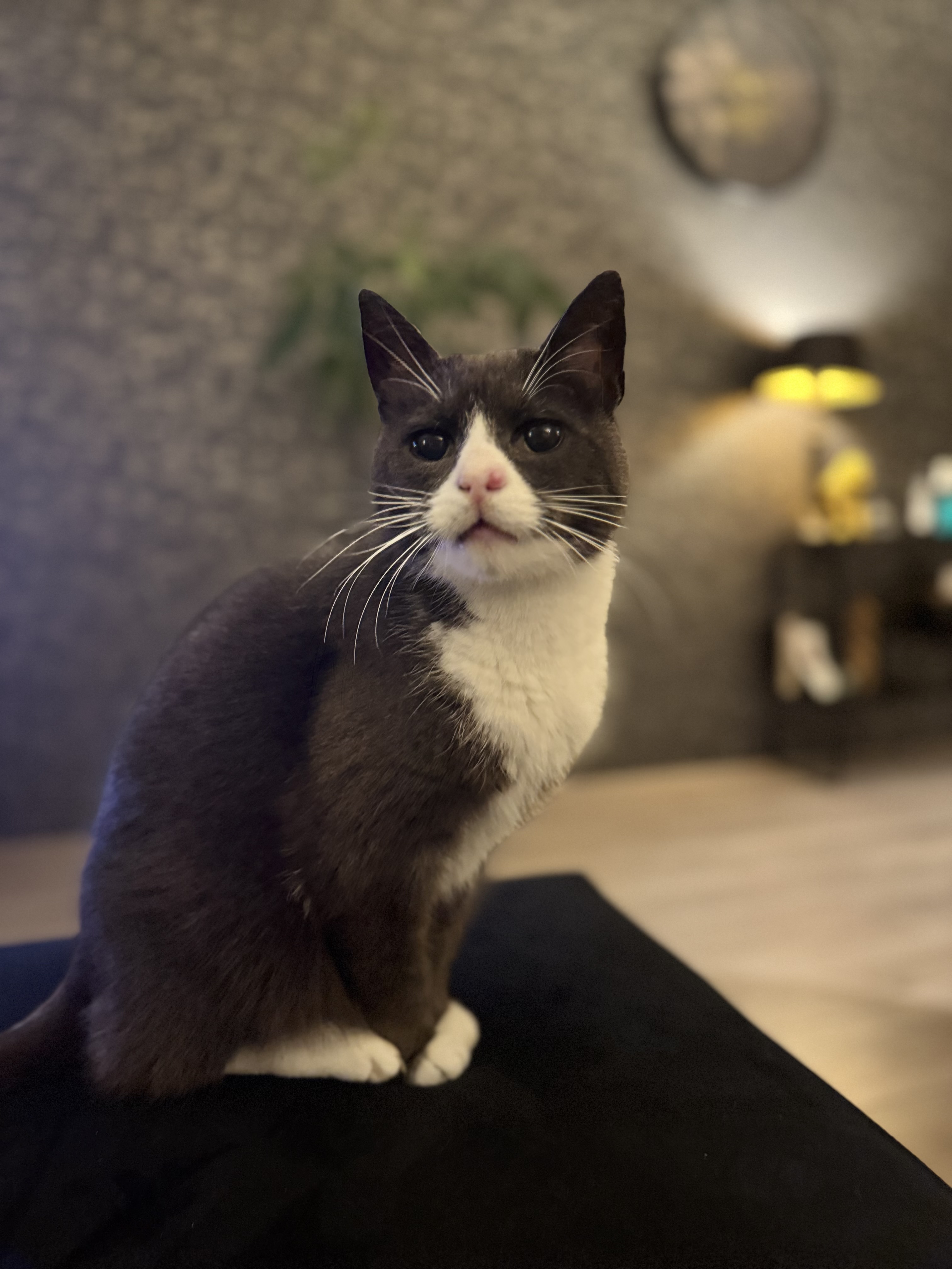 Gizmo is over het algemeen zwart met een wit nekje en witte pootjes. Vaak ging liep hij naar de plus en onder het viaduct in de west Indische buurt.