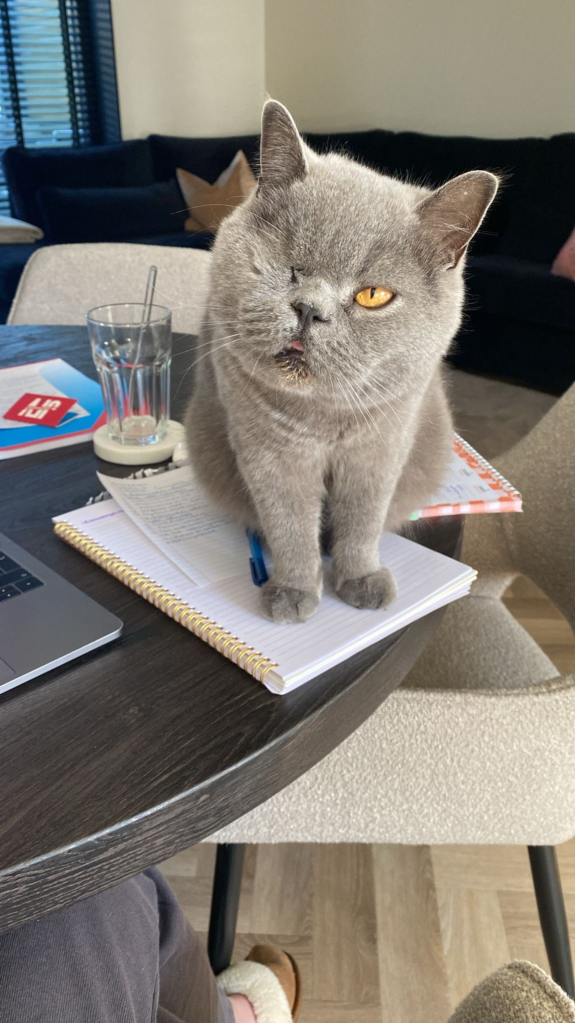 Grijze Britse korthaar met een oogje.