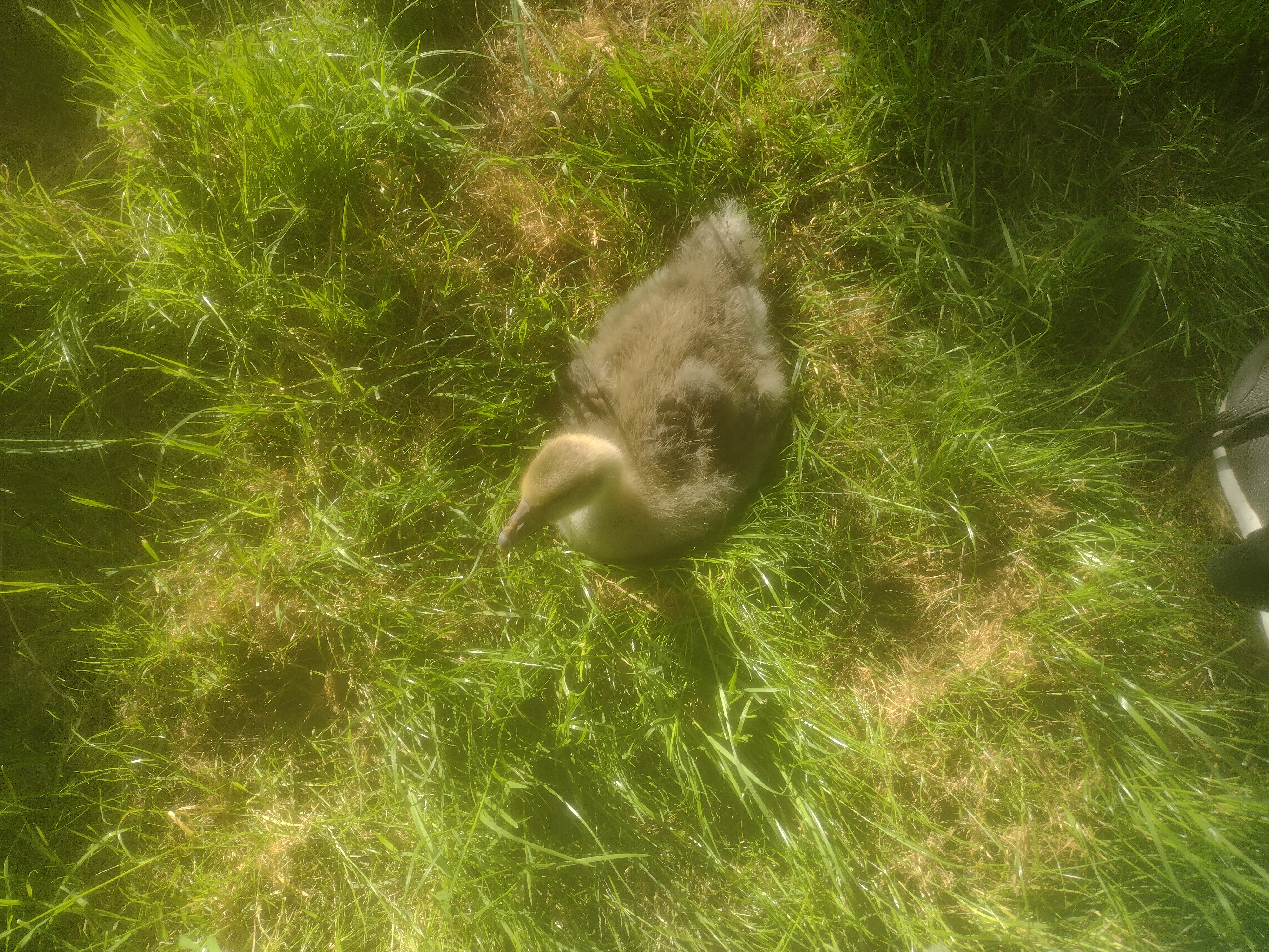 Jonge gans, is tam en reageert op zijn naam en op mensen.