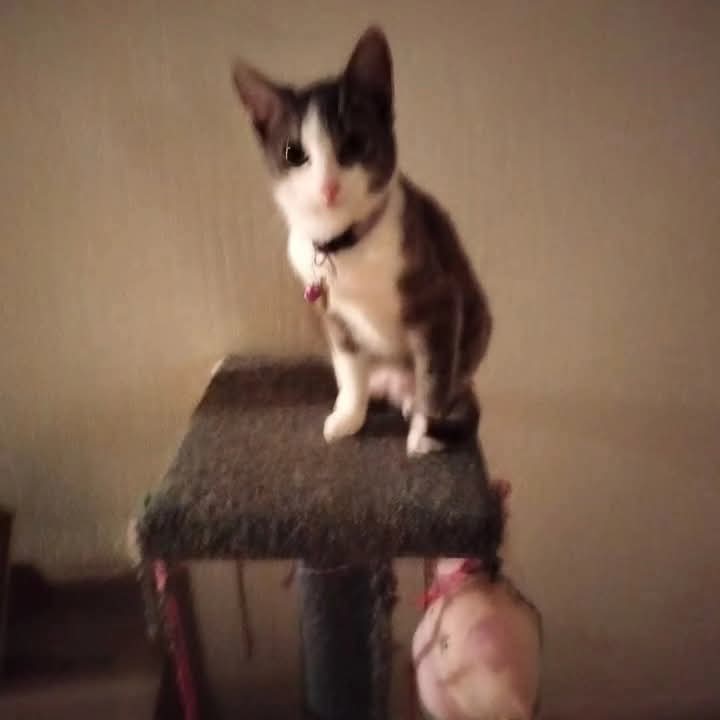 Sam is een klein, aanhankelijk poesje. Ze is ondernemend en gaat regelmatig op onderzoek uit in een schuur of garage. Ze komt ook graag naar mensen toe.