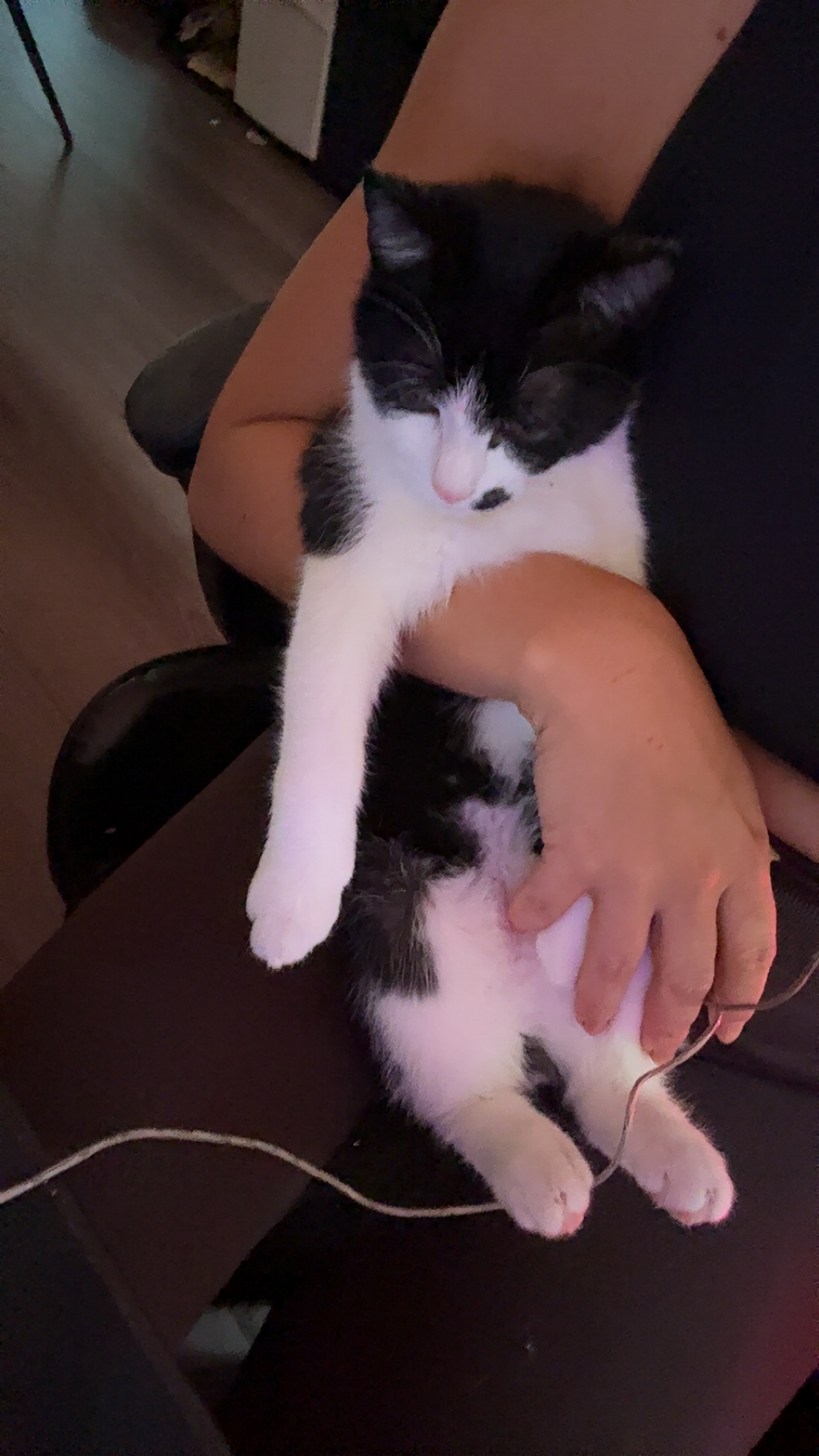Redelijk kleine lieve kater die niet graag opgepakt wordt.